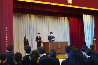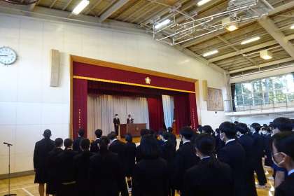 整然とした始業式では、各学年代表の言葉、校長の話、生活指導主任の話がありました。
