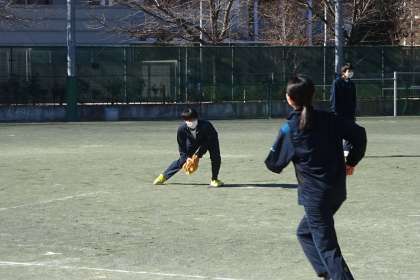 単にキャッチボールをするだけでなく、投げたらランニングする、ゴロを捕球して返球する、フライを上げてもらいキャッチするなど基本的な技能に取り組んでいます。