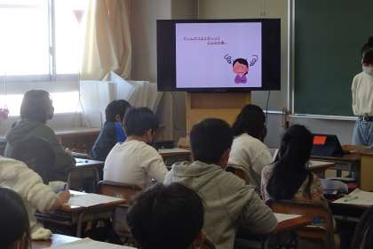 1年生はこれまで知らべてきた職業について、クラスのみんなの前で発表しています。