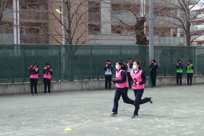 体育授業の長距離走で日本女子体育大学との連携を始めました。大学でのランニングフォームの指導内容を中心とした学習プログラムにより、どの程度学習成果が上がるかという研究ですが、本校の生徒がその学習プログラムによって、「長距離走のタイムがよくなった」「ランニングフォームを身につけて走りやすくなった」など成果があると思います。