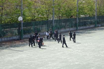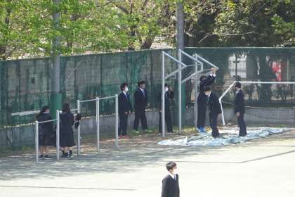 久しぶりの昼休みです。 4月は本当にたくさんの生徒が校庭に出て、のんびりしたり遊んだりします。