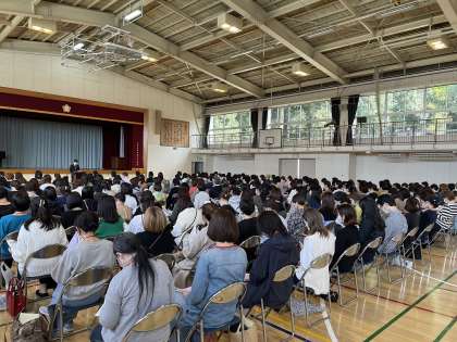 学校全体で9クラスとなって初めて制限なく全体保護者会を体育館で実施しました。多くの保護者の方がいることに驚くと同時に、改めて気の引き締まる思いでした。
