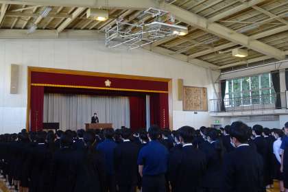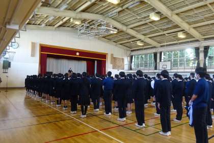 久しぶりに全校生徒が体育館に一堂に会す全校朝会。