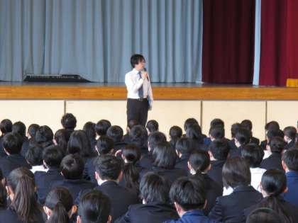 昨日の全校朝会では、進路指導主任より授業への取組についての話がありました。