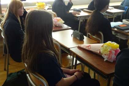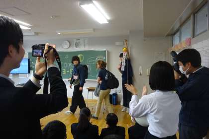 まずは、3年生の各クラスでウエルカムパーティーをしました。自己紹介、ゲーム、質問などなど、少しでも早く慣れてもらうため、生徒が考えた内容で楽しい時間を過ごしました。