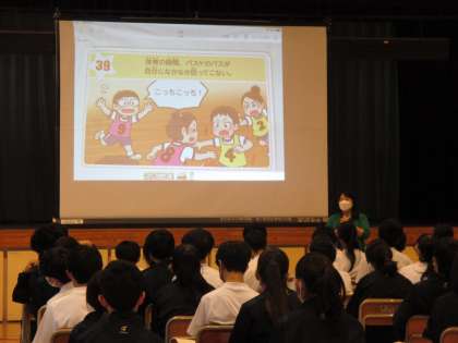 2年生は、本校スクールカウンセラーを講師として、アンガーマネジメントについての学習をしました。まず、自分はどんな場面で怒ってしまうのだろうという気付きから。先生たちも自分が中学生の頃のことを思い出しながら自分の怒りポイント(だったこと)答えていました。友達の怒りポイントを知り、最後にスクールカウンセラーから、怒りを鎮める簡単な方法をいくつか紹介していただきました。怒りも大事な感情ですが、ストレートに出してしまうとよくない場合があります。自分をマネジメントしていく方法を少しずつ身に付けていきましょう。
