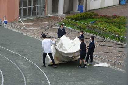 今日、予行練習実施します。予行練習の今日は、平常通りの登校で、8:25教室で出欠確認した後、イスを校庭に出します。