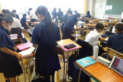 前時の復習をしてから、今日の習いとなる例題を解いていきますが、先生の発問にたくさん反応しつつ意欲的に取り組んでいてとても楽しそうです。