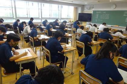 定期考査1の2日目は、理科、英語、音楽の3教科。 給食なしで12;15下校です。