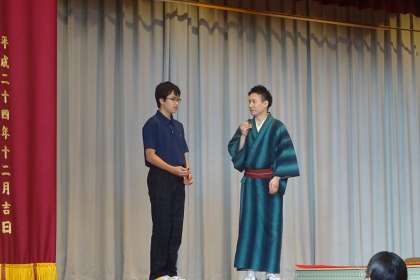 教科「日本語」の日本文化「楽」では落語に触れています。(2年生で学習)