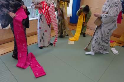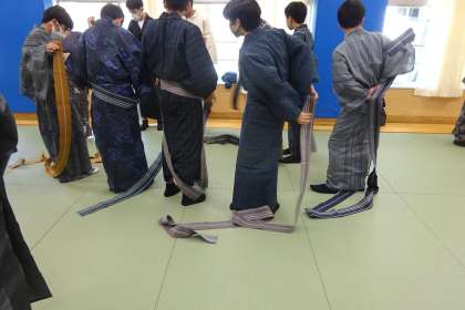 着たことがない浴衣ですので、簡単なように見えますが難しそうでした。特に帯を締めるのに苦労している生徒が多かったようです。