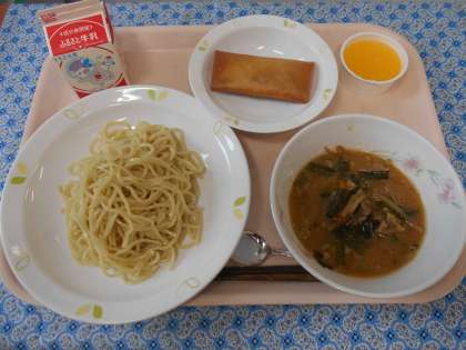 ☆献立 ラーメン (つけ麺) 牛乳 魚の包み揚げ フローズンゼリー