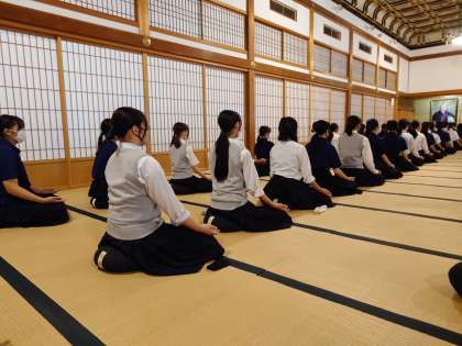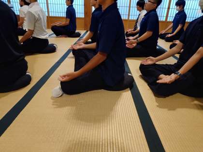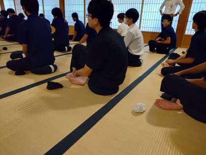 座禅を組む前に姿勢、呼吸の基本を学びます。