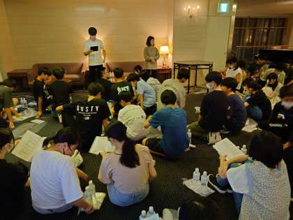 夕食後、室長会議をし、今日はゆったりと過ごしました。そして、21時過ぎ班長会議をして就寝準備。