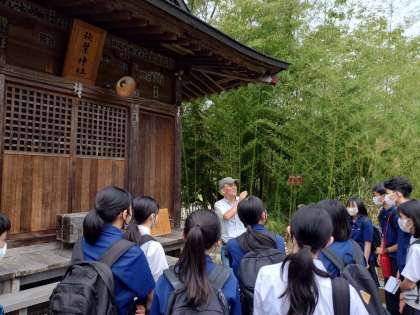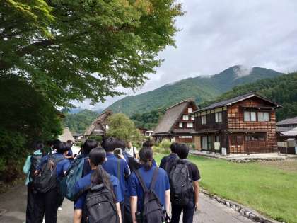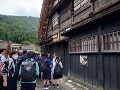 白川郷では1クラス2グループにガイドさんがつきます。