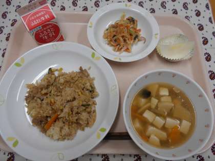☆献立 豚ともやしの中華ご飯 切り干し大根のシャキシャキサラダ サンラータン なし