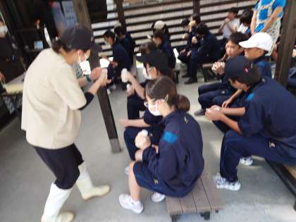 バター作りに挑戦。 みんな上手くできたね!とほめられました。