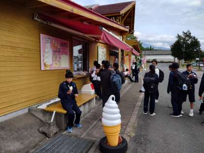 ご褒美で食べてもよいことにしました。ソフトクリームのお店に行列です。