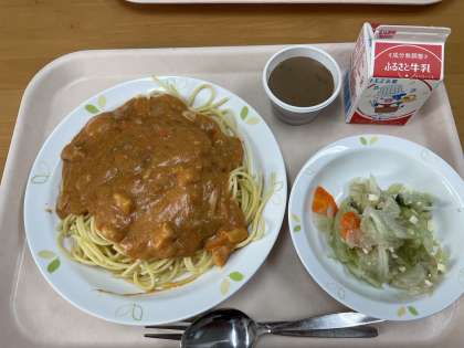 ☆献立 トマトクリームスパゲッティ グリーンサラダ カフェオーレゼリー 牛乳