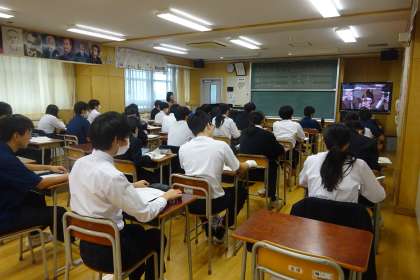 我が国伝統音楽である「雅楽」を大型テレビで視聴しました。真剣に聞き、見入る3年生ですが、その音楽からどんなことを感じたでしょうか。
