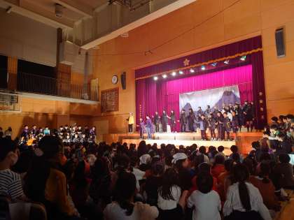 桜小学芸会に行ってきました 公開日 2023/11/24 更新日 2023/11/24 今日のできごと 児童鑑賞日の今日、桜小学校の学芸会に行ってきました。時間の都合で残念ながら、4年生と5年生の発表しか見ることができませんでしたが、それぞれ数多くのセリフがあるのはもちろんのこと、歌あり、笑いあり、教えられることありであっと言う間に時間が過ぎました。小道具、大道具や衣装などの準備、照明、音楽との合わせも苦労のあとが見られました。 いいね(0)