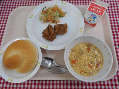 ☆献立 ミルクパン 牛乳 フライドチキン パリパリサラダ