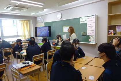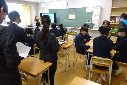 指導教諭による公開授業です。都内の英語科の先生方が研修のため来校しました。