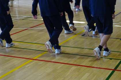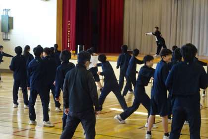 2年体育 ダンス 公開日 2024/01/24 更新日 2024/01/24 今日のできごと 2年生の体育はダンスの単元。毎年、2年生を対象に講師の先生に指導していただいています。 まずは準備運動から始まり、基本の動きやステップに取り組んでいきますが、すぐにできてしまうのが素晴らしい。 いいね(0)