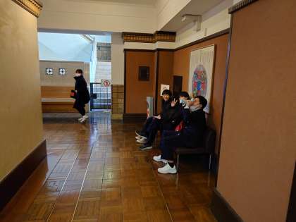 多くの小学生、中学生、高校生が来ています。なかなか桜木中生に出会えません。かろうじて休憩中の班に会いました。
