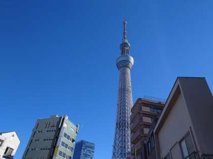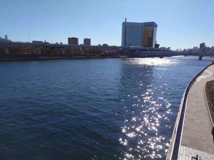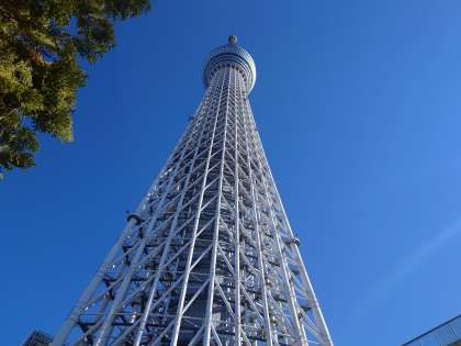 スカイツリーを下から見上げました。と、言問橋から見た隅田川。