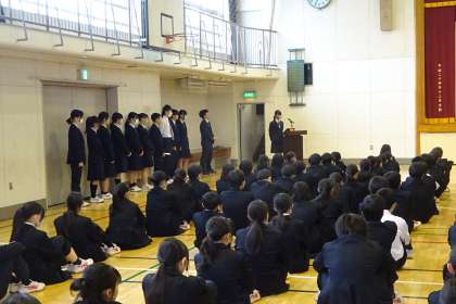 前で話す人がお辞儀をすると、号令がなくても着座で礼をする生徒が多くいて、感動しました。委員長から伝えられたことが、生徒の皆さんで実行できるとうれしいですね。