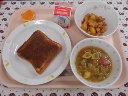 3月5日(火)今日の給食 公開日 2024/03/05 更新日 2024/03/05 給食 ☆献立 ココアトースト 牛乳 鶏肉とじゃがいものケチャップ炒め 野菜とマカロニのカレースープ 清美 いいね(0) 給食