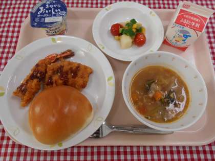 3月22日(金)今日の給食 公開日 2024/03/22 更新日 2024/03/22 給食 ☆献立 バターロールパン 牛乳 えびといかのフライ きゅうりとトマトのサラダ ミネストローネ カップヨーグルト いいね(0) 給食