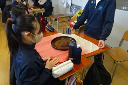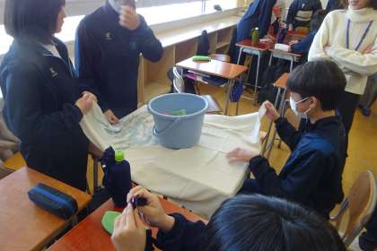 1年教科「日本語」体験学習 公開日 2024/03/22 更新日 2024/03/22 今日のできごと 1年生の教科「日本語」体験学習、風呂敷包みです。 昔、いろいろと用途で使われていた風呂敷。何か包むのにとても便利なことがわかります。 まずは水筒。そして、ちょっと大きなものに挑戦しました。 いいね(0)