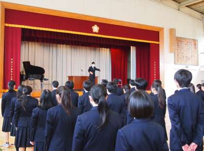 まだ2,3年生だけの校歌斉唱でしたが、1年後の卒業式では感慨深い思い出が詰まった校歌が聞こえることでしょう(菅野)
