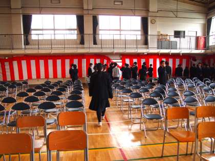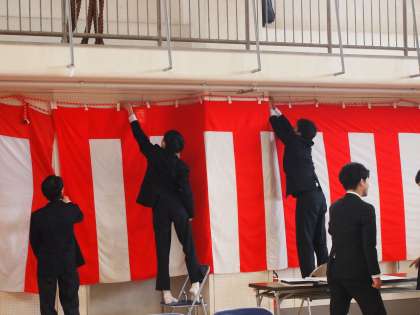 入学式準備 公開日 2024/04/09 更新日 2024/04/09 今日のできごと 始業式後は、在校生が体育館で明日の入学式準備をしていました。紅白幕担当の生徒は最後まで丁寧に微調整をしていました。ありがとう!後輩を迎える先輩としての自覚が十分に感じられました。生徒が帰った後、先生が椅子の位置の微調整を、生徒に負けないくらい緻密にやっています。新入生のよき思い出を残す陰ではこのような努力が続けられていたのですね。(菅野) いいね(0)