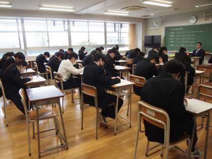 今日は、校内一斉に学習習得確認調査のテストが行われています。どの学年も真剣ですが、特に3年生の集中力は廊下を歩いていても「シーン」という音が聞こえてきそうなほどです(菅野)