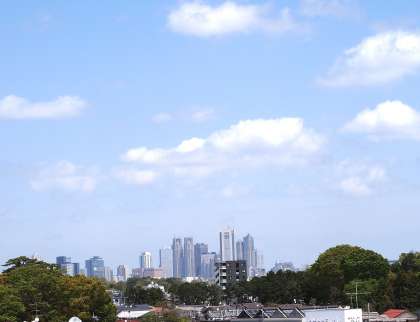 少し春霞がかかっていますが、桜木中校舎の4階からは都心の高層ビル群の景色がよく見えます。季節によって見え方が違うようですが、この景色に癒される生徒も多いことでしょう(菅野)