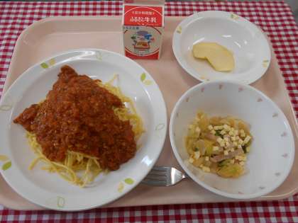 ☆献立 スパゲティミートソース 牛乳 イタリアンサラダ りんご