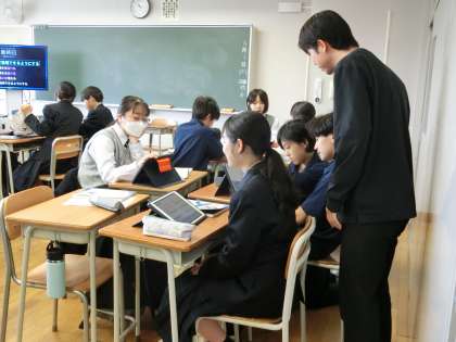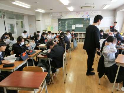 授業頑張っています 国語 公開日 2024/05/09 更新日 2024/05/09 今日のできごと 1年生の国語は「自分の言葉で表現できるようになる」ことに取り組む最終回です。先生が回ってくると、果敢に質問して自分の解答が正解に近いか確かめようとしています(菅野) いいね(0)