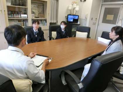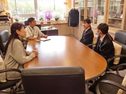 校長面談 吹奏楽部 公開日 2024/05/09 更新日 2024/05/09 今日のできごと 今日の昼休みに校長室で面談を行ったのは吹奏楽部です。桜木中学校の吹奏楽部はボロ市のパレードをはじめ地域行事でも大活躍しています。そんな部活動の部長さんと副部長さんにも部活を運営するにあたり考えなくてはならない課題もいろいろあるようで、校長先生と副校長の質問に緊張しながらも素直に答えていました。そしてなんと、校長先生も少しだけピアノが弾けることが分かりました!ぜひ聴いてみたいですね(菅野) いいね(0)