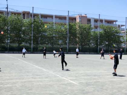 授業頑張っています 体育 公開日 2024/05/10 更新日 2024/05/10 今日のできごと 今日は絶好の体育授業日和。カラッとしたさわやかな青空のもと、1年生が頑張っています。明日の体力テスト、来月の体育大会を控え、今日は盛りだくさんのメニュー。まずはハンドボールと30m走から(菅野) いいね(0)