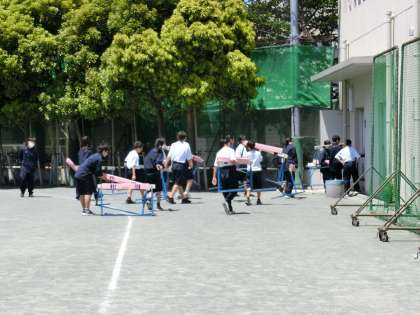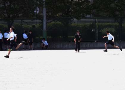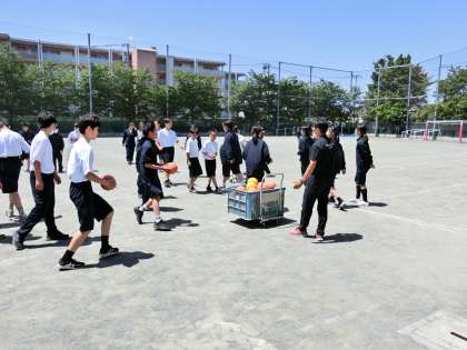 今日の授業撮影をしていて気づいたこと。それは先生が、きめ細かく考えながら生徒の動きをみて予測をし先回りして、計測場所まで行き大きな声でタイムを教える、という指導を確実にしていることや、「いいねー」「すごいねー」と生徒を励ましほめる言葉が数多く聞かれました。それにこたえるかのように、ハードルを運んだり片付けたり、ボールをしまったり、という行動が自らできる生徒もたくさんいたのです。つい1ヶ月ほど前には小学生だったとは思えない成長ぶりです(菅野)