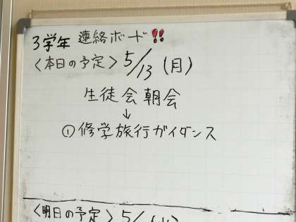 生徒会朝会後の体育館では、3年生が残って修学旅行のガイダンスをしています。出発は9月12日ですが、夏休みをはさんでいるので、それこそあっという間に当日を迎えます。今から気持ちを高め、事前学習などの準備をしていきましょう(菅野)