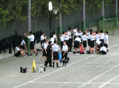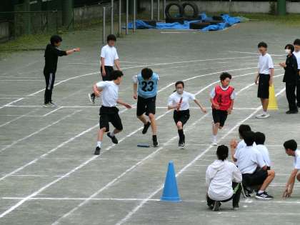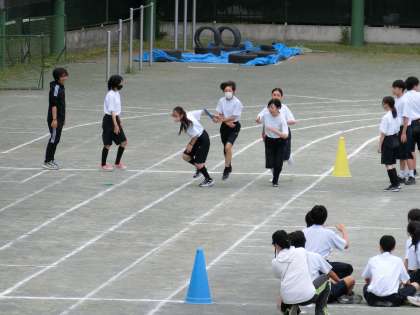 全員リレーの練習をしています。途中バトンを落としてしまうハプニングもありましたが、練習での教訓を生かすことが大切。本番ではうまくいきますよ!途中給水タイムを取ってしっかり熱中症対策もしていました(菅野)