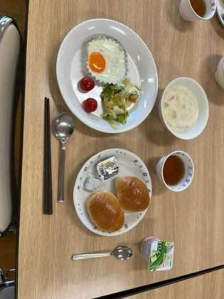 3日目の朝食です。 食事係がテキパキと準備できました。