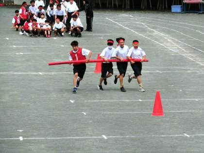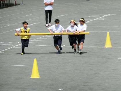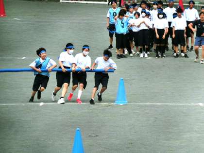 初めての桜木中での運動会に参加する1年生。学年種目も、本番を見据えて真剣に取り組んでいます(菅野)