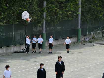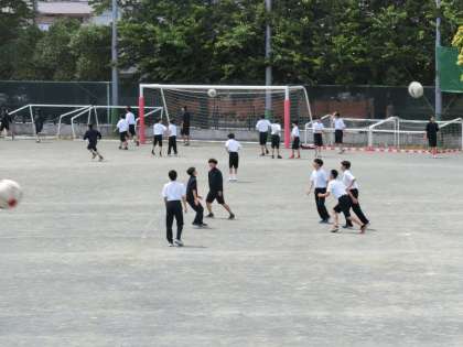 校庭では今日も元気いっぱい、遊んでいる桜木中生たちです。ボールが空高くあちこちで上がっています(菅野)