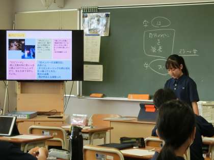 河口湖の発表 公開日 2024/06/18 更新日 2024/06/18 今日のできごと 1年生の学活では河口湖の事後学習の発表をしています。画像やエピソードなども交えて分かりやすく楽しいプレゼンを工夫していることが伝わってきます(菅野) いいね(0)