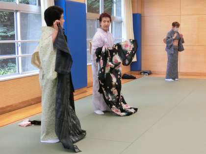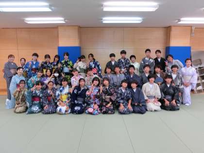 最後に男女のゆかたの違いについて説明をいただき、全員で記念撮影をしました。将来は、伝統文化である和服を着こなせる、ステキなおとなの人になってくださいね(菅野)